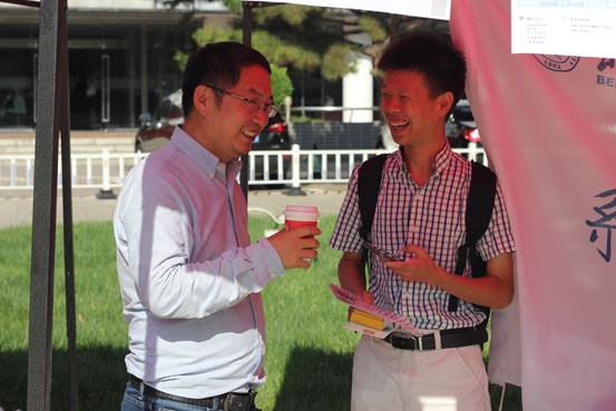 8月24日上午,我们在学校主楼门前的广场迎接新同学,除了我和李小萌老师外,李红刚老师和王有贵老师也来到了现场。我不知道他们是不是领导派来的,反正他们就是领导,但我知道他们和我一样,都想尽早地看到以前熟悉的面孔。过了十年了,他们会怎么样呢?我们有点紧张,认不出他们多不好意思。我们更担心,他们还认识进入中年油腻态的老师们么?