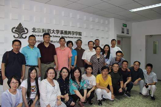 师生在学院的Slogan前留影,相信大家会永远记得“Complex World, Simple Rules.”。